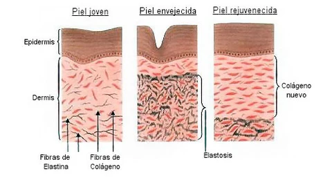 La dermis —la capa intermedia de la piel— está compuesta en gran parte por colágeno tipo I. Cuando los niveles bajan, la piel pierde estructura y la epidermis se vuelve más fina. Los signos visibles aparecen rápido: arrugas, pérdida de firmeza, flacidez. A nivel del cuerpo, también se debilitan huesos, tendones, uñas y cabello.