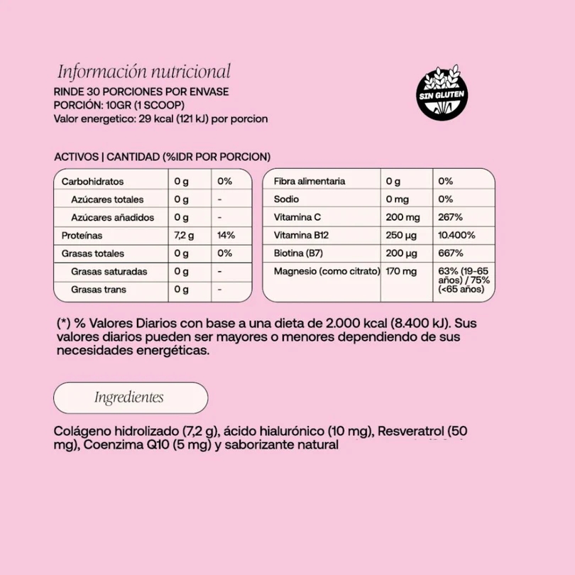 Cada ingrediente tiene respaldo científico. El colágeno hidrolizado aporta la proteína y los aminoácidos para la piel, huesos y articulaciones. El ácido ascórbico garantiza la síntesis. El ácido hialurónico potencia la elasticidad. El resveratrol protege las células. El magnesio citrato asegura energía. La CoQ10 refuerza la protección antioxidante. Y la B12 sostiene tu metabolismo. Es una fórmula donde cada ingrediente cumple una función, respaldada por estudios clínicos. Los resultados se notan en la piel, los huesos, las uñas y tu vida diaria. Incorporalo a tu rutina de bienestar y dejá que la evidencia hable.
